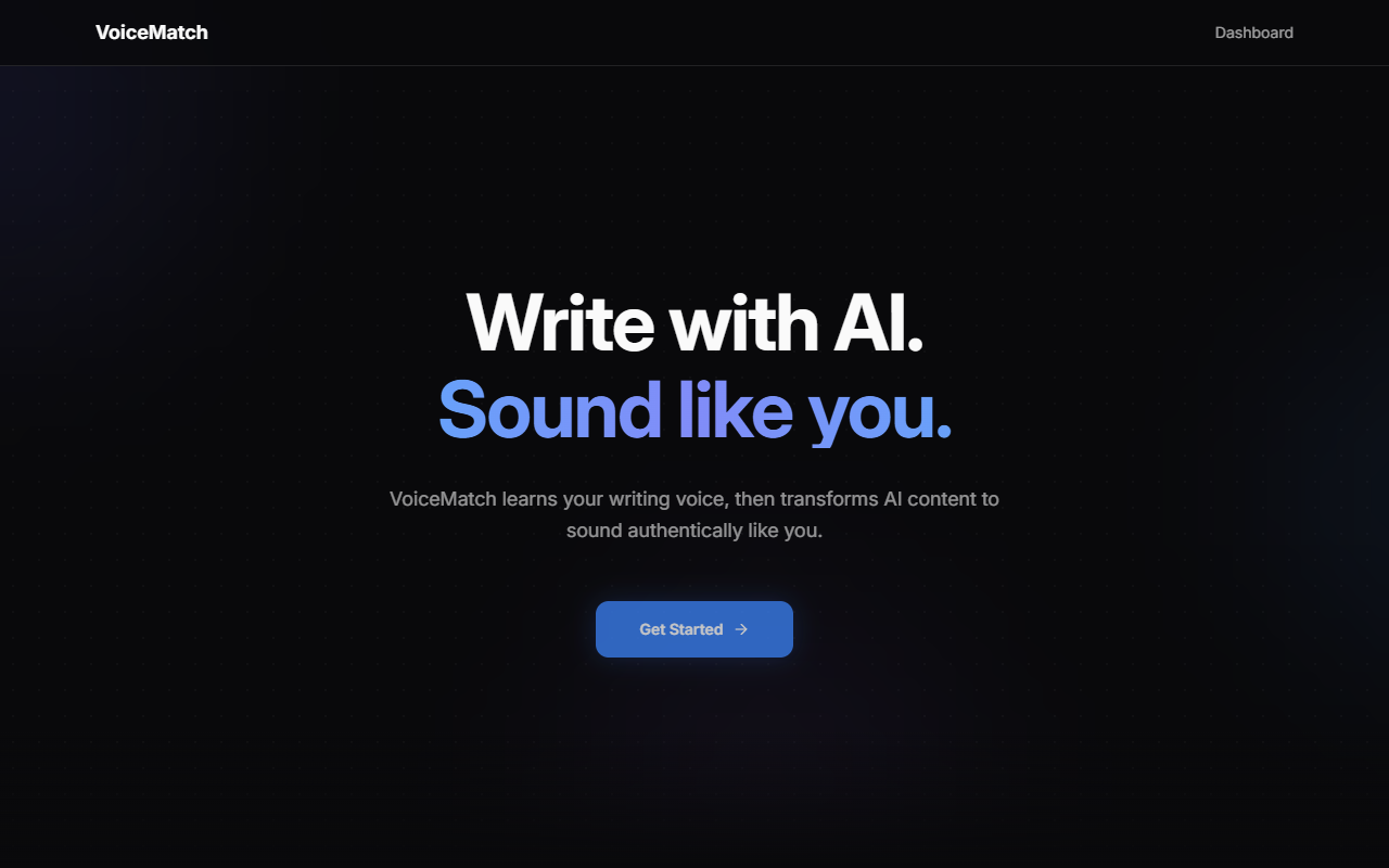 Voice AI matching platform with real-time streaming. Dual AI integration with Anthropic Claude and OpenAI for voice processing, drag-and-drop file handling, and animated UI.